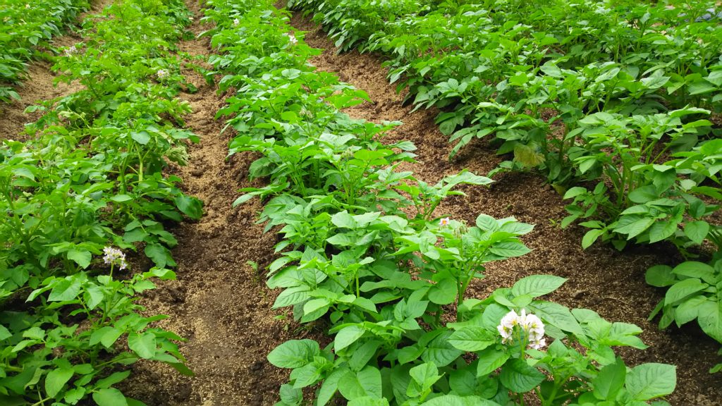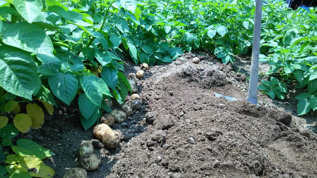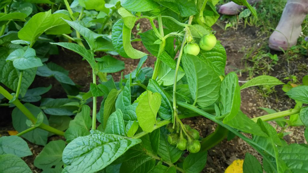 いもに養分がいくようにお花を摘み取る栽培方法もあるようですが、さほど収量に影響がないという話を聞き、私はそのまま花をつけておくことにしました。