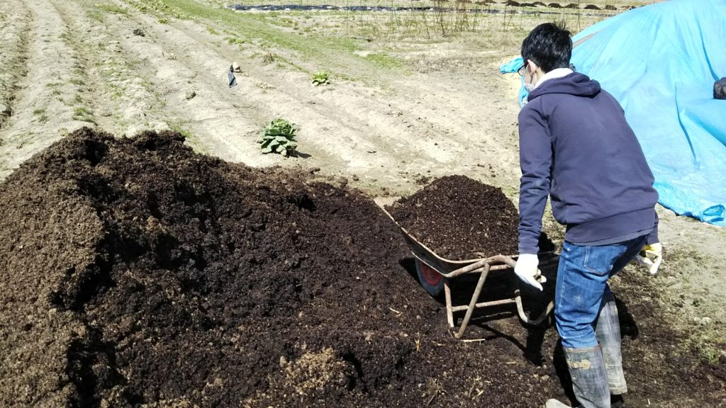 トルサファームでは、栄養がたっぷり必要とする野菜畑には、完熟たい肥、米ぬか、もみがらなどを畑に入れます。