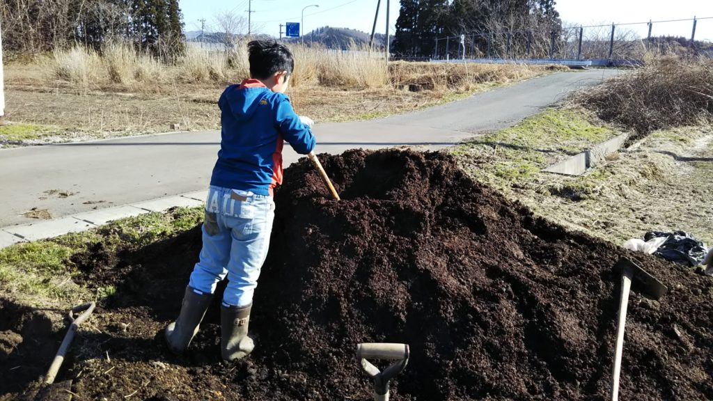 堆肥をネコ車に積みこみ、運ぶを繰り返す作業を、文句を言わず、もくもくと働く姿に成長を感じ、感動してしまいました。