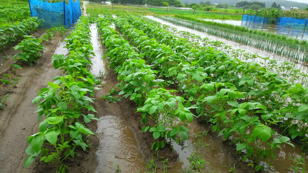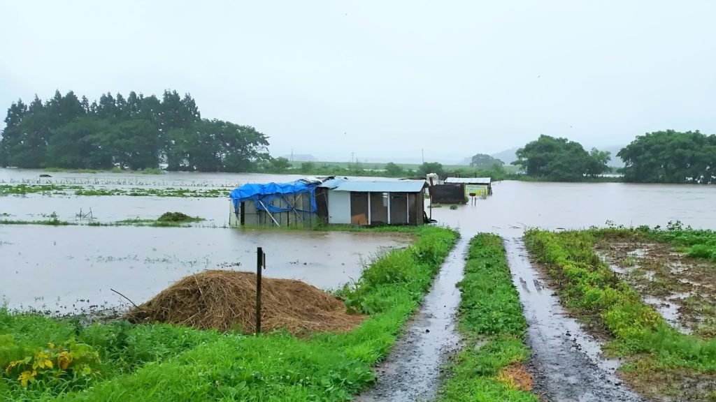 秋田県内全域による記録的大雨により、ついにトルサファームの畑がある雄物川沿いの畑地帯が水没しました。